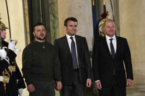 【香港中通社2月9日電】綜合消息:當地時間8日晚,烏克蘭總統澤連斯基抵達巴黎,與法國總統馬克龍、德國總理朔爾茨會談並舉行聯合新聞發佈會。