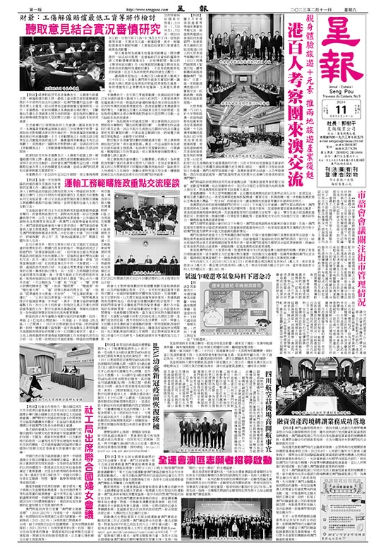 特區政府正有序編製各規劃分區的詳細規劃,包括:東區-2(已完成公開諮詢)、外港區-1、外港區-2和北區-1(已開展),2023年也將啟動氹仔中區-2的詳細規劃。同時,積極落實小區規劃,逐步推進聯生工業邨規劃及逸園跑狗場原址的相關工作,以回應社會訴求。會上,土地工務局副局長麥達堯就相關規劃工作向與會代表作出介紹。另一方面,按照2023年施政重點,特區政府將繼續有序推進:澳氹第四條大橋及周邊路網、A區公共房屋及相關配套、A區路網和共同管道,以及輕軌東線等建設項目。公共建設局副局長沈榮臻也在會上就已於2022年開展及將於2023年計劃招標的公共工程項目作出介紹。
