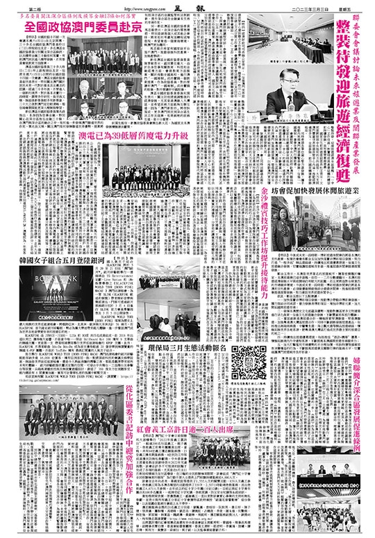 【特訊】今後或未來一段時期,博彩旅遊休閒業仍將是本澳的支柱產業。板營坊會會長鄒金玉促加快落實非博彩項目發展,努力打造“一程多站”精品遊路線,持續推出旅遊優惠措施,促進文化旅遊融合發展,切實維護旅遊城市形象,推進旅遊休閒業提速提質發展。