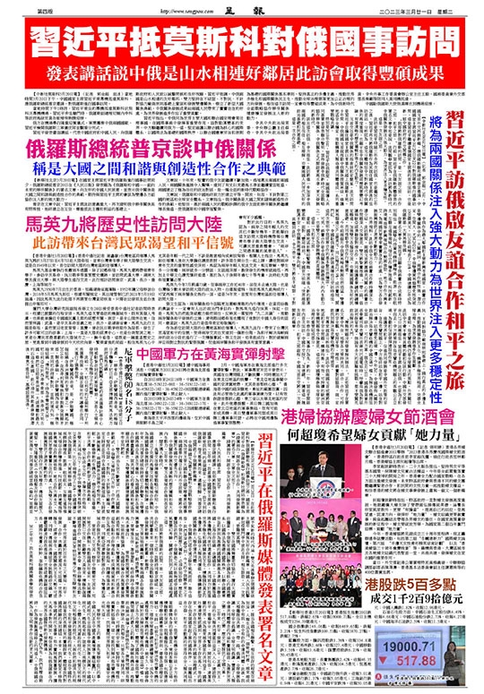 【新華社北京3月20日電】在國家主席習近平對俄羅斯進行國事訪問前夕,俄羅斯總統普京20日在《人民日報》發表題為《俄羅斯和中國——面向未來的夥伴關係》的署名文章,向友好的中國人民致意,並表示俄中關係是大國之間和諧與創造性合作的典範,期待與習近平主席的會談為雙邊各方面協作注入新的強大動力。