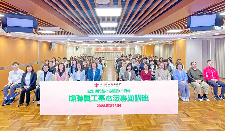 【特訊】為紀念《澳門基本法》頒佈三十周年,婦聯總會於三月卅一日為專職員工舉辦專題講座,邀請律師鄺玉球和吳海燕主講,冀藉此加強婦女工作者對基本法的認識和了解,提升對國家的認同和歸屬感。婦聯理事長袁小菱、副理事長兼秘書長庄玲玲、副理事長羅萍等負責人及婦女工作者,逾一百三十人出席參與。
