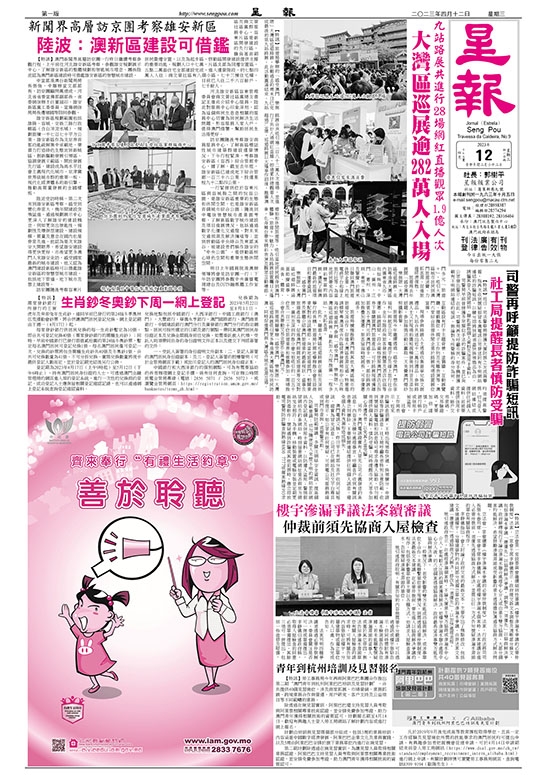 社會工作局表示,近來詐騙訊息猖獗,不時出現領取快遞、換領積分、申請津貼等詐騙訊息。社工局呼籲長者特別注意防範,收到懷疑詐騙電話和訊息時可尋求身邊人協助,切勿輕易提供個人資料,慎防受騙;同時提醒市民大眾多加關心身邊長者,以免其上當受騙。