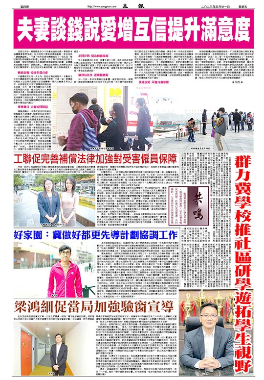 早前,政府公佈維持現行有關工傷或職業病的損害賠償限額。工聯副理事長李靜儀及工聯政務委員會委員柯麗香表示,本澳《工作意外及職業病所引致之損害之彌補之法律制度》實施近三十年,但近年當局未有啟動對制度作全面的完善工作。她們促請當局就有關政策、補償和支援機制及程序等方面作檢討修訂,加強對不幸遭遇工傷和職業病的僱員的支援和賠償。