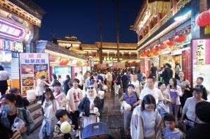 “五一”假期,跨省中長線遊、周邊遊和熱點景區高位運行。全國旅遊出遊人次超過2019年同期水準,出行距離和消費活躍度創下歷史新高,遊客出遊半徑和目的地遊憩半徑雙提昇,300公里以上的跨市、跨省遊熱度明顯走高。根據數據監測,4月28日18時至5月3日6時,243個國家級夜間文化和旅遊消費集聚區夜間客流量7768.6萬人次,平均每個集聚區每夜6.39萬人次,較2022年同期增長114.5%。