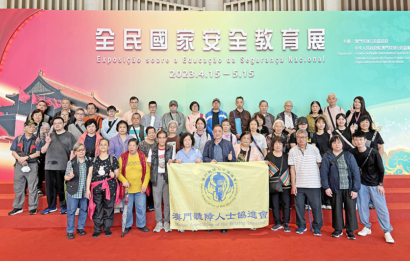 【特訊】澳門聽障人士協進會永遠會長趙俊云帶領聽障會員及其家屬共45人前往參觀由澳門特別行政區政府與中央人民政府駐澳門特別行政區聯絡辦公室聯合主辦的2023年「全民國家安全教育展」活動。