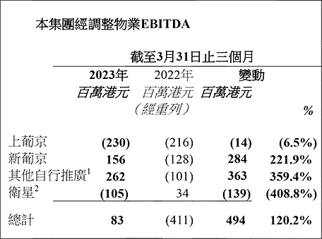 ‧本集團於2023年第一季度之經調整EBITDA2為3,100萬港元,於2022年第一季度則為 負4.74億港元。