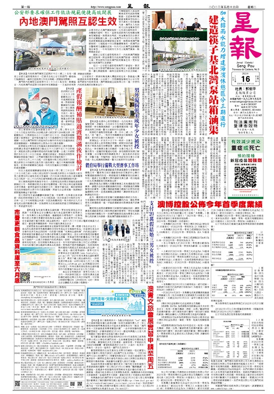 【特訊】澳門博彩控股有限公司(「本公司」)今天公佈本公司及其附屬公司(統稱「本集團」)截至2023年3月31日止三個月(「2023年第一季度」)之節選未經審核主要業務表現指標。