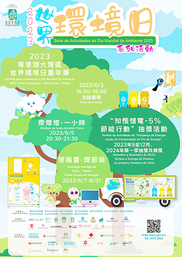 有關活動詳情請查閱環保局網頁(https://www.dspa.gov.mo/index.aspx)、微信公眾號或致電“環保熱線”(2876 2626)查詢。