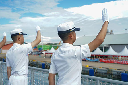 當地時間上午9時,文方在摩拉港碼頭舉行了隆重的歡送儀式。中國駐文萊大使肖建國、武官戴祁林、使館工作人員以及當地中資機構代表、華僑華人代表、文萊海軍官兵代表等200餘人到碼頭送行。戚繼光艦駛離碼頭後,到達指定海域與文萊海軍達魯薩蘭艦匯合,聯合開展過航演練。 到訪文萊期間,我任務指揮員拜會了文萊海軍代理司令沙裡夫,出訪官兵分別赴文萊皇家武裝部隊軍事博物館、文萊大學、文萊海軍艦艇參觀,與文方青年官兵舉行體育友誼賽,並參加了沙灘環保公益活動。在文海軍訓練中心,中文雙方圍繞兩國海軍人才培養有關情況進行了深入交流。 靠泊期間,戚繼光艦組織了5場艦艇開放活動,中國駐文萊大使館、文萊軍方、當地市民、華僑華人、中資機構人員等近千人次登上艦艇參觀。