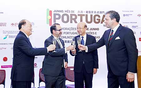 【特訊】行政長官賀一誠於六月十日強調,在澳的葡人社群是澳門社會的重要組成部分,特區政府充分肯定他們發揮的重要作用。同時,中葡文化交融的深厚底蘊,是澳門發展的獨特優勢和重要基礎,因此要繼續發揚族群和諧共處、多元文化共融的優良傳統,為社會繁榮進步共同努力。行政長官賀一誠於六月十日傍晚出席在澳門葡文學校舉行的葡萄牙日、賈梅士日暨葡僑日慶祝招待會,他在致辭時首先代表澳門特區政府向葡萄牙人民和旅居澳門的葡籍人士、土生葡人致以親切問候和誠摯祝願。