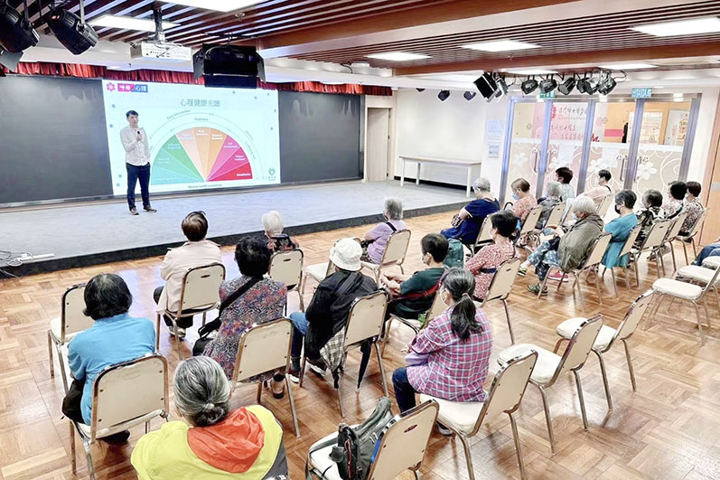 講師首先講述在日常生活中維持良好的生活習慣、社交連繫和自我調節,有助於心理健康,同時向長者講述可以如何幫助和關心有情緒困擾的他人,包括不批判的聆聽、陪伴參與活動、照顧好自己等等。講師亦講解壓力的形成、壓力帶來的身體改變、不同壓力所帶來的正反面影響等,同時教導長者可以透過認知、情緒、生理和行為,四個方面來覺察自己的身心情況。講師亦提供方法給長者去紓緩焦慮和壓力,例如讓長者嘗試在生活中設定一個短暫的“焦慮時間”,每當有焦慮時就提醒自己可以在該時段才擔憂,過後就將注意力集中在要做的事情上。最後講師列出不少鼓勵的句子讓長者學習如何以言語去關心朋友。