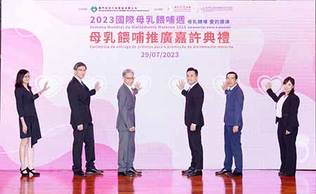 羅奕龍局長在致辭中表示,今年國際母乳餵哺週(WABA)的主題是「實現母乳餵養 為在職父母謀福利」,職場的配合是延續母乳餵哺最貼心、實在的支援,是對在職哺乳媽媽的有力肯定。特區政府一直致力支持和推廣母乳餵哺,推動形成以政府主導、社區支持、全民參與的方式建立和諧的餵哺環境,協助公、私營機構設置及優化母乳餵哺室,積極拓展和營造母乳餵哺友善工作間,透過多渠道發佈母乳餵哺及母乳室的資訊,讓更多家長了解母乳餵哺的好處;在社會上建立客觀環境及文化,讓本澳居民認識和感受其重要。羅局長期望,居民可在不同工作領域共同做好宣傳推廣工作,以行動支持母乳餵哺,為澳門下一代的健康及構建「健康澳門」作出貢獻;社會各界持續配合和推動相關各項政策,更好地維護婦女與嬰幼兒的權利;攜手助力國家《母乳餵養促進行動計劃(2021-2025)》,共同推進《健康中國2030》,達致人人享有健康。