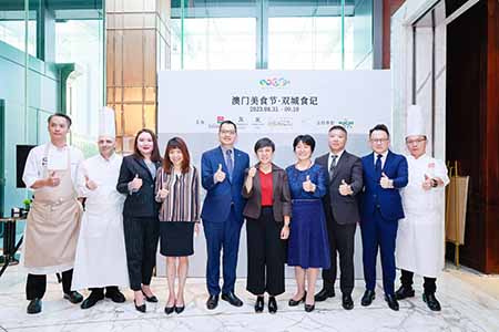 由澳門特別行政區政府旅遊局、金沙中國及天津瑞吉金融街酒店合辦、澳門啤酒為支持單位的“澳門美食節.雙城食記”推廣活動於8月31日至9月10日(逢周四至周日)在天津瑞吉金融街酒店河岸餐廳呈獻,由金沙中國旗下“品粵軒”中菜行政總廚張錦東及澳門瑞吉酒店“雅舍”行政助理總廚Michele Dell'Aquila親身到天津主理,送上一系列別具特色的粵菜及澳葡地道美食包括:葡式陳皮炆牛臉頰肉、XO醬馬介休炒蘭花苔、鴛鴦橄欖蛋白炒飯、葡式海鮮飯、葡式炒蜆及木糠布丁,並與天津瑞吉酒店廚師團隊分享菜譜,推出主題自助晚餐,當中亦有天津美食,互相交流廚藝及美食文化。