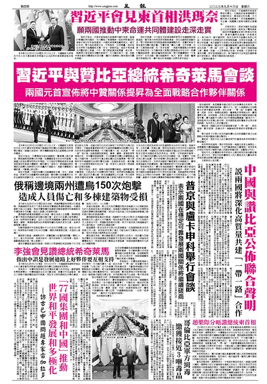中國與讚比亞公佈聯合聲明 說兩國將深化高質量共建「一帶一路」合作