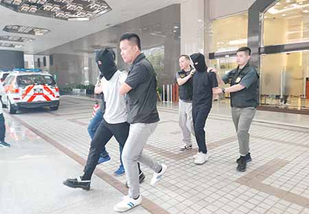 被捕兩名香港男子分別姓何,二十九歲,兌換店職員;姓盧,二十九歲,網絡工程人員;現涉及電腦詐騙,清洗黑錢等被送交檢察院處理。