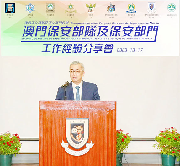 【特訊】為強化警察的責任和擔當,堅定人員的警務理念和核心價值。於10月17日上午,在澳門保安部隊高等學校禮堂舉辦「2023澳門保安部隊及保安部門工作經驗分享會」。保安司司長黃少澤、警察總局局長梁文昌、澳門海關關長黃文忠,保安範疇轄下領導和各級人員代表出席,以及在各保安部隊及保安部門設有15個直播點,合共660人參與是次分享會。