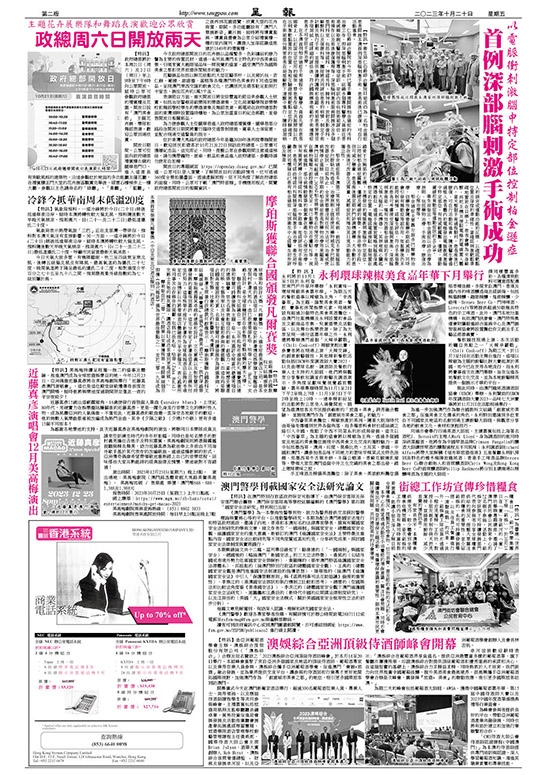 【特訊】永利將於11月1至5日於永利皇宮南門戶外草坪舉辦「永利賞味—環球辣椒美食嘉年華」,為期五天的餐飲盛事以辣椒為主角,「中西薈萃」為主題,匯聚美食美酒、餐飲 賽事和休閒娛樂元素。現場將設有超過20個特色美食美酒攤位、由澳門社服機構及永利設置的食品及文創商品市集、兒童遊樂及活動區,以及舞台娛樂表演。除了為大眾呈現一場社區嘉年華之外,永利還將舉辦澳門首個「火辣爭霸戰」(Chili Cook-off)辣椒烹飪比賽,參賽者將在現場上演「火辣交鋒」的創意廚藝競技。其他精彩餐飲活動包括UBCM年度調酒師大賽2023,以及由環球名廚、調酒師及餐飲行業人士主持的大師班,他們將與觀眾分享餐飲知識並作廚藝及調酒演示,多角度呈獻味覺視覺感官體驗。嘉年華舉辦時間為11月1至2日下午2至晚上7時,11月3至5日下午2時至晚上10時,一連串精彩紛呈的活動將對公眾免入場費開放,期望為遊澳旅客及市民提供嶄新的「旅遊+美食」跨界融合體驗, 並展現澳門作為「創意城市美食之都」的魅力。