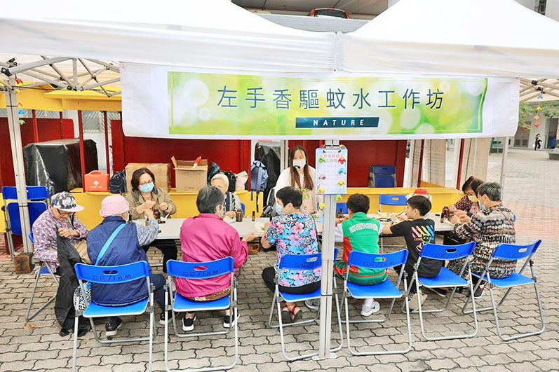 活動當日舉辦三項關於家居環保的工作坊,製作清潔酵素、咖啡渣磨紗膏及左手香防蚊液,以及好書交換攤位,培養市民廢物利用好習慣,同場亦設有豐富的遊戲攤位、環保小貼士展版及舞台表演與民同樂,當中包括穿著扎染舊衣物的「catwalk show」,吸引不少市民駐足觀看。活動花絮短片將於稍後上傳至澳門明愛社交媒體平台,歡迎市民觀賞。