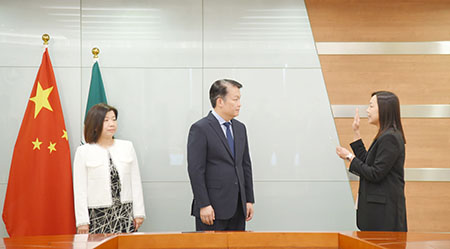 梁碧珊在儀式上首先感謝行政長官和經濟財政司司長的信任及支持,將恪盡職守,團結上下,貫徹履行與落實特區政府施政的方針與目標。