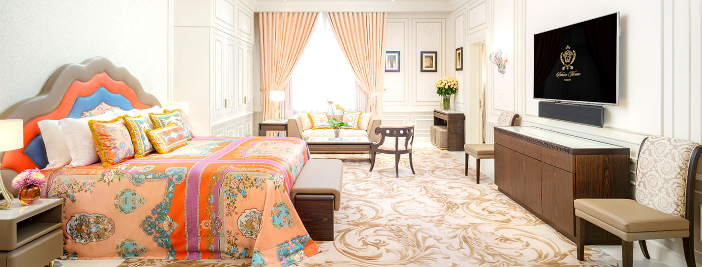 作為全球首個時尚品牌酒店,Palazzo Versace目前設有兩家,分別位於阿聯酋杜拜和中國澳門。 Palazzo Versace 澳門酒店大樓設計奢華、設施優越: - 該酒店為澳門上葡京綜合度假村三棟酒店大樓之一,擁有12層樓高,共271間客房和 套房,全部採用量身訂製的Versace Home織品及裝飾 - 設計盡展意大利宮殿雅致,以Versace一貫的米蘭風格元素營造經典奢華氣派 - 以經典 Medusa 標誌、希臘幾何紋飾和巴洛克圖案搭配菊花和巨龍元素,完美結合意 式風尚和中式典雅,締造Palazzo Versace澳門獨有的設計品味 - 歷經四代傳承的知名意大利工藝世家Fantini Mosaici,手工打造意大利傳統水磨石地 板及馬賽克瓷磚,細膩展現Versace追求卓越設計的精髓 - 開設兩家意式餐廳,包括家族經營的米芝蓮星級餐廳Don Alfonso 1890(當奧豐素 1890),及La Scala del Palazzo(嘉樂酒吧) - 提供一系列尊尚設施和服務,包括設有私人護理套房的水療中心、融入Versace元素 的土耳其浴室,以及戶外及室內游泳池