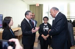 出席會議期間,王毅分別會見了聯合國秘書長古特雷斯、斯洛文尼亞副總理兼外長法永、巴西外長維艾拉、馬來西亞外長讚比裡,並集體會見沙特、埃及、卡塔爾、土耳其、印尼等阿拉伯、伊斯蘭國家外長。