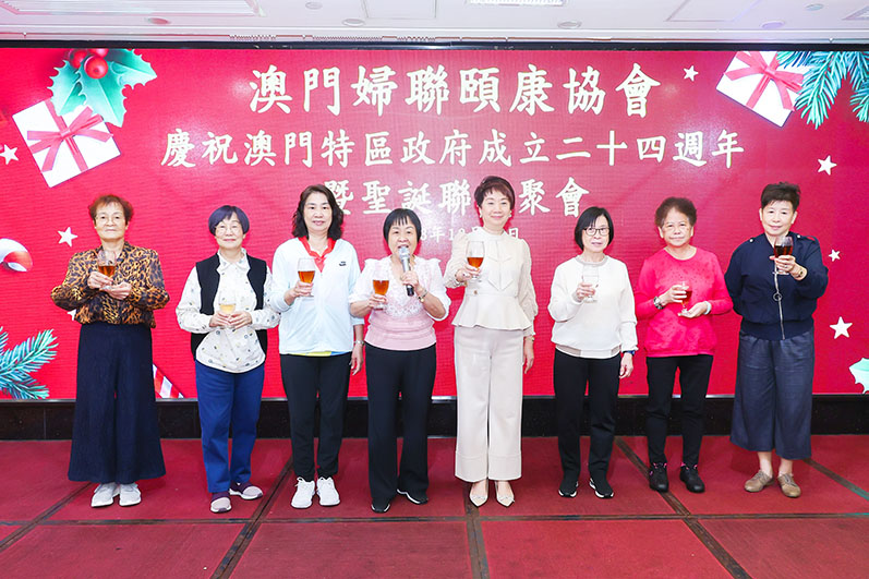 【特訊】婦聯頤康協會日前假帝濠軒舉行「慶祝澳門特區成立二十四周年暨聖誕聯歡聚會」,邀請創會會長楊秀雯、錢明及歷屆理監事參加。會長陳愛珠、理事長林潔影、監事長林雪萍、副會長林玉玲以及現屆理監事和顧問共六十多人出席,活動冀藉慶祝特區成立二十四周年及聖誕佳節,增強協會會員的凝聚力。