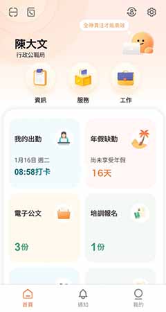 公務人員登入“公務通”後,便可即時查看出勤紀錄、電子糧單、以電子方式申請年假或缺勤、超時工作、報讀培訓課程、提交醫生檢查證明書、申請出生及結婚津貼、辦理公積金制度“轉換易”服務,以及跟進公文收發、電子公函制作或公文流轉等工作。