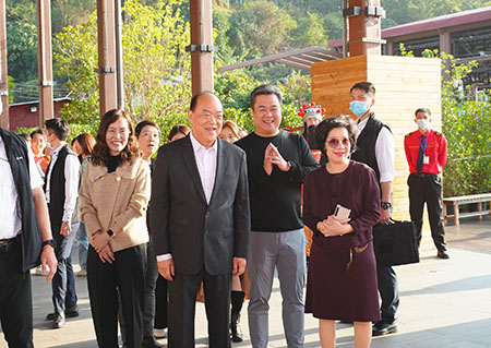 參觀各大片區期間,行政長官向沿途居民、旅客送上新春祝福,又與居民合照留念。陪同參觀的還有社會文化司司長歐陽瑜、文化局局長梁惠敏、社會文化司司長辦公室顧問羅灝芝等。