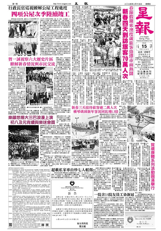為配合“1+4”適度多元發展策略,積極推動“以中華文化為主流、多元文化共存的交流合作基地”的建設,特區政府工作團隊聯同六大綜合度假休閒企業持續推進澳門歷史片區活化工作,藉新春期間推出一系列應節活動,充分發揮聯動優勢,營造規模效應,與廣大市民旅客歡度新春、共慶佳節,讓市民及旅客感受澳門節日魅力,創出龍年新氣象。