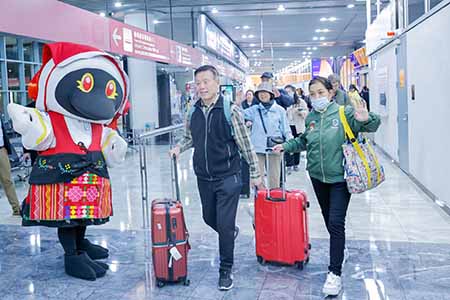 旅遊局安排澳門旅遊吉祥物“麥麥”到澳門國際機場歡迎來自西安的旅客,並向旅客致送紀念品,提升旅客訪澳體驗,宣傳澳門旅遊形象,展現澳門熱情好客的一面。