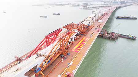 澳氹四橋項目自二○二○年三月廿六日正式開工以來,工程實施過程之中受到多輪疫情衝擊等多重困難,同時受惡劣天氣、複雜地質條件、航空通航限制條件等不利因素影響,最終克服重重難關,順利完成全橋合龍,是澳氹四橋項目一個極為重要的階段性里程碑。