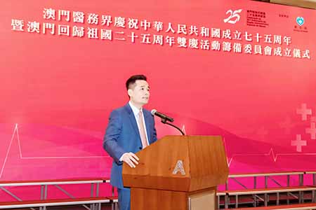 【特訊】為慶祝中華人民共和國成立七十五周年及澳門回歸祖國二十五周年,澳門醫務界日前成立了「澳門醫務界慶祝中華人民共和國成立七十五周年暨澳門回歸祖國二十五周年雙慶活動籌備委員會」,並舉行了成立儀式,旨在凝聚醫務界力量迎接雙慶年,攜手推動本澳醫療衛生事業持續發展。衛生局局長羅奕龍、副局長郭昌宇及鄭成業等出席了成立儀式。
