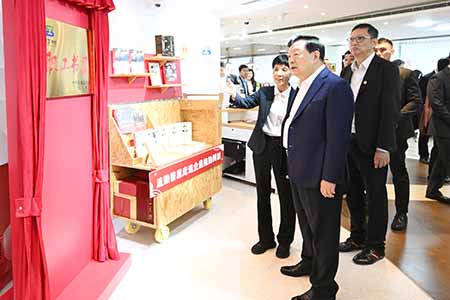 中央港澳工作辦公室主任、國務院港澳事務辦公室主任夏寶龍在本澳考察調研第三天,昨日早上約十時乘坐專車抵達沙梨頭工聯大廈,逗留約 一個多小時。夏寶龍在行政長官賀一誠和經濟財政司司長李偉農陪同下,聽取工聯代表介紹其面向廣大職工的各項服務,期間參觀了全國總工會首間境外的「職工書屋」,亦向小朋友贈送禮物。