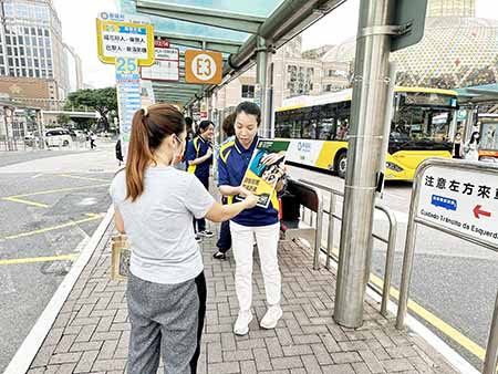 【特訊】為提醒市民注意防範盜竊及電訊網絡詐騙,司法警察局開展社區宣傳活動,派員到本澳各區巴士站提醒大眾防範公共交通工具上的盜竊,並推廣司警局「反詐程式」,藉此提高大眾的防罪能力。是次社區宣傳活動接觸了約三千名居民及旅客。