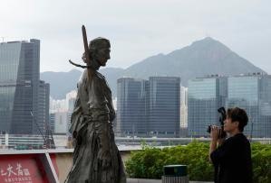 【香港中通社5月29日電】(呂紀星)香港啟德碼頭新增打卡標誌,金庸武俠小說《鹿鼎記》要角陳近南的雕塑,29日起在碼頭展出,免費向公眾開放。