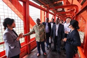 6月2日至7日,由納米比亞、南非、讚比亞、布基納法索、澳大利亞、智利、新加坡、日本等國家的20余位駐華使節、外交官及外國駐華機構代表組成的2024“駐華使節貴州行”代表團,來貴州參觀考察大數據、基礎設施建設等方面的發展情況。 代表團一行乘坐大巴車從貴陽到安順看壩陵河大橋參觀橋樑博物館,再到貴州黔南布依族苗族自治州“天空之橋”觀光服務區夜觀平塘大橋。一路上,他們穿行多條高速公路,路上不同造型的橋樑和長短不一的隧道以及路邊的風景,讓不少代表團成員感觸良多。