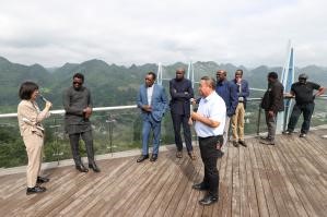 目前,貴州已建和在建橋樑3萬餘座,世界高橋前100名中,49座在貴州。讓謝勝文大使感到驚訝和新奇的是,貴州在設計建造橋樑時,將旅遊業融入其中,讓遊客可以在橋上行走、體驗大橋蹦極和跳傘等活動,這種橋旅融合的發展方式值得南非和其他國家學習和借鑒。