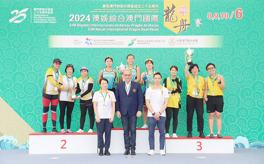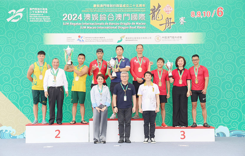 【特訊】「2024澳娛綜合澳門國際龍舟賽」如火如荼,昨日迎來標準龍賽事,澳娛綜合度假股份有限公司(「澳娛綜合」)派出公開組的澳娛綜合金禧大龍,以及女子組的澳娛綜合蓮花大龍參賽,雙雙收獲佳績。