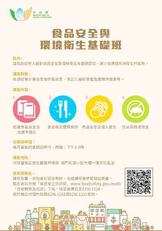 【特訊】為提升食品業界的食安認知及操作水平,市政署持續提供系統性的食安培訓課程供業界人士報讀。七月份食品安全與環境衛生基礎班及進階班課程現正接受報名,歡迎業界踴躍報讀。另外,市政署現正推出“食安心─衛生自查鼓勵計劃”,食品場所只要有員工完成相關食品安全課程皆可參與,藉此推動企業提升整體衛生管理水平和食品安全形象,詳情可瀏覽食品安全資訊網內專頁瞭解更多。