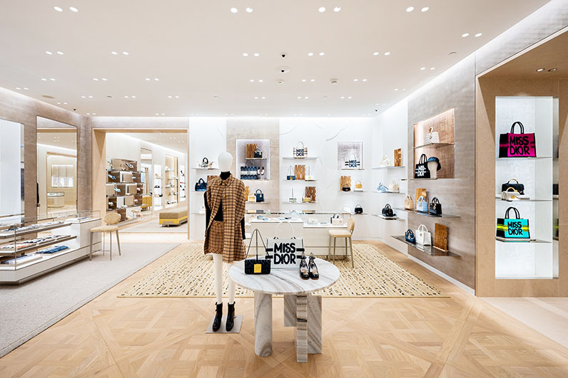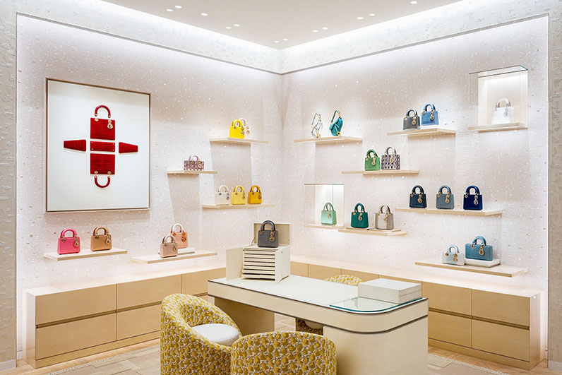 瑰麗迷人的空間結合了優雅的店舖設計與藝術品裝飾,以燈光營造氛圍,融會傳統與簡 約精緻的當代韻致,Versailles parquet 木地板和品牌经典 cannage 藤格紋等 Dior 元素 為空間倍添魅力。家具揉合大膽精神與高雅格調,以柔和的白色、奶白色及灰色為主調。 除了藝術家王志遠引人入勝的畫作,洪浩、Etienne Moyat、Lucie Touré 和蔡昀儒的藝 術品亦點綴於各個專區,漫步其中,教人浮想聯翩。此外,店內更分別設有男、女裝 VIP 專屬沙龍,讓貴賓在充滿藝術感的雅致空間中,恬適地享受具私密度的購物時光。