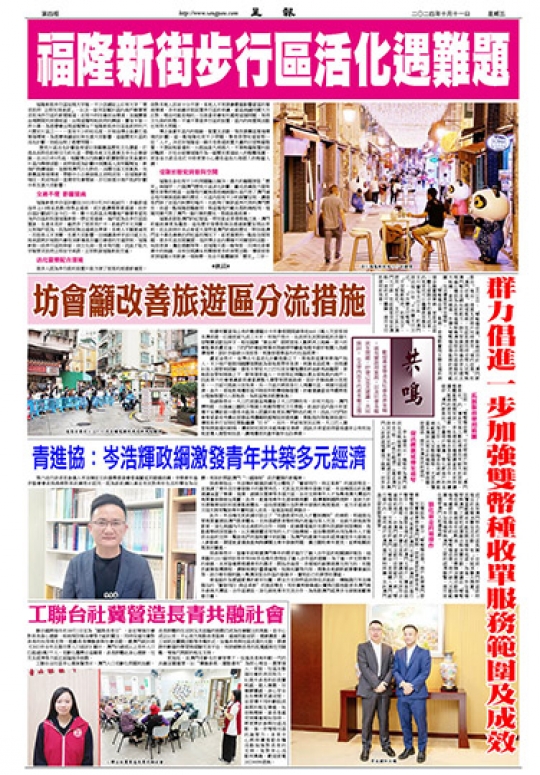 根據有關當局公佈的數據顯示今年暑假期間錄得近668.5萬人次旅客到本澳旅遊,已達疫前九成三水平。有商戶表示,在政府及民間發起的多個大型雙慶活動加持下,相信國慶“黃金周”期間旅客人數將再上高峰。草六坊會監事長盧定淦、三巴門坊會副理事長陸錦榮呼籲當局提早做好相關人流疏導預案,設計多路線分流旅客,刺激旅遊景區外的社區經濟。