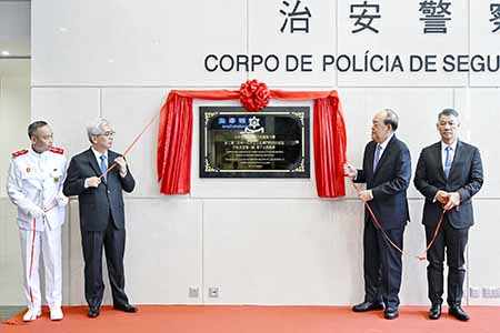 【特訊】位於氹仔北安碼頭大馬路的治安警察局總部及特警隊大樓於昨(十五)日舉行揭幕儀式,行政長官賀一誠、保安司司長黃少澤、警察總局局長梁文昌,以及治安警察局局長吳錦華出席主禮,行政長官賀一誠在主禮嘉賓陪同下主持揭幕儀式,並與一眾嘉賓參觀了大樓的多項設施及訓練場地。