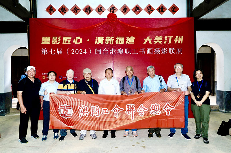 【特訊】澳門工會聯合總會監事長阮愛武日前帶領由工聯文化委員會及澳門業餘藝苑一行組成的9人代表團,出席由福建省總工會、台灣勞工大聯盟總會、香港工會聯合會、澳門工會聯合總會共同主辦的清新福建·大美汀州2024(第七屆)閩台港澳職工書畫攝影聯展,以促進閩台港澳職工文藝交流。