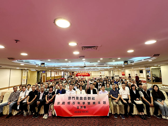 【特訊】為慶祝中華人民共和國成立七十五周年、澳門特別行政區成立二十五周年,澳門菜農合群社於10月30日晚假好世界酒樓舉辦“百年情,家國夢”雙慶主題宣講會。活動邀請到澳門工聯職中校長呂吉實擔任主講嘉賓,當晚出席會員、理監事共120人。
