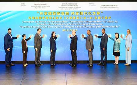 社會文化司司長歐陽瑜在贈送儀式上致辭表示,連續三年在澳舉行向葡語國家電視台贈片儀式具重要意義,彰顯澳門「背靠祖國、聯通世界」的橋樑和紐帶作用。她稱,今次贈予的第二季《大國建造》大型紀錄片,展現了大國建造在推進中國式現代化中的中國智慧、中國方案與中國力量,期望紀錄片能夠加深葡語國家觀眾對中國的了解,促進民心相通。
