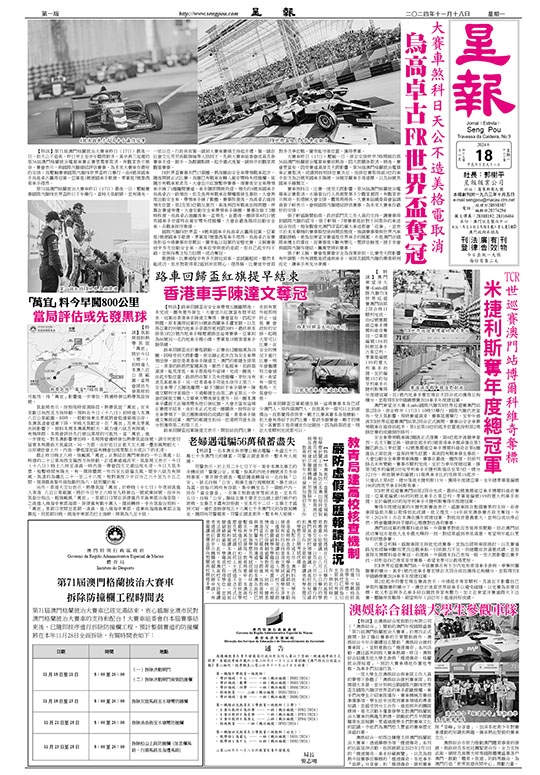 【特訊】由澳娛綜合度假股份有限公司(「澳娛綜合」)贊助的澳門年度國際盛事「第71屆澳門格蘭披治大賽車」於周四正式展開。除了擔任賽事的主要贊助商外,澳娛綜合今年亦繼續冠名贊助「澳娛綜合德利賽車隊」,並特意推出「極速傳奇」系列活動,讓社區共同投入賽車熱潮。昨日,澳娛綜合組織本地大學生參與「極速傳奇–格蘭披治探秘遊」,到訪大賽車場地作實地考察,為車手們加油打氣。