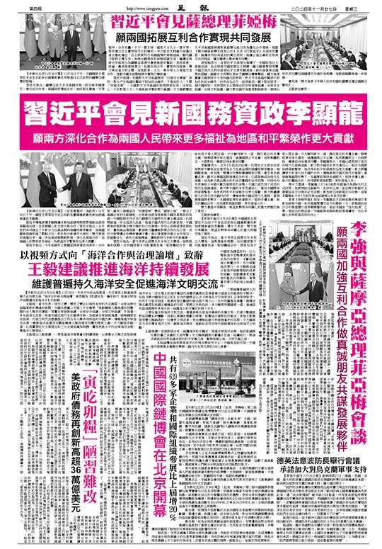 【新華社北京11月26日電】國務院總理李強11月26日上午在北京人民大會堂同來華進行正式訪問的薩摩亞總理菲婭梅舉行會談。