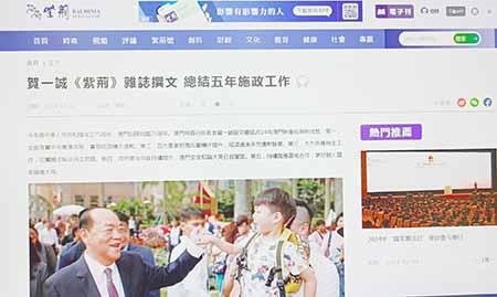 【特訊】行政長官賀一誠在報刊發文指澳門特區第五屆政府在過去五年努力實現澳門更好發展,全力推動澳門特區各項事業躍上新台階,強調必須繼續堅定不移,全面準確貫徹落實「一國兩制」、「澳人治澳」、高度自治的方針,不斷譜寫具有澳門特色的「一國兩制」成功實踐的華彩篇章。