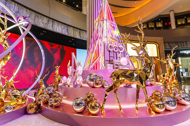 新濠天地是一個承載夢想的地方,冬日節慶期間,度假村將會化身為以粉色為主色調的聖誕場景,聖誕樹、巨型裝飾品及禮盒等節日氛圍濃厚的裝飾品遍佈新濠天地不同角落,隨時讓一眾賓客的聖誕願望成真。今年更是新濠天地首度設立戶外聖誕裝置,當中包括逾11米高的巨型聖誕樹及超過12米高的夢幻馴鹿裝置,裝置均以特殊鏡面物料製成,與外牆亮起的燈光相互輝映,營造動人心弦的觀賞效果。新濠天地主入口中央則設有一座逾16米寬的大型聖誕音樂劇院,悠揚的節日頌歌將在每小時響起,四周是姿態各異的馴鹿,加上夢幻的飄雪效果,猶如冬日華麗仙境。即日起至12月31日,賓客更可以免費領取節慶薑餅人及甜蜜棉花糖。此外,在12月14日至25日的指定日子,更會有特色慶典巡遊載歌載舞及派發聖誕禮品,歡迎一眾賓客一起盡情感受節慶歡騰的氣氛!