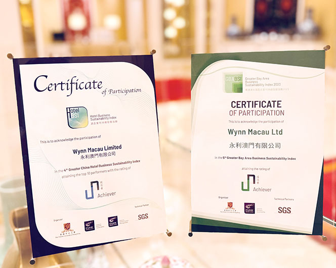 另一方面,「粵港澳大灣區企業可持續發展指數」主要鼓勵及支持企業以負責任和可持續的方式蓬勃發展,為大灣區的可持續增長作出貢獻。永利於「大灣區企業可持續發展指數」已連續 3 年被評為前二十名企業,對比其他參與企業的平均得分更高出 18%,今年再度入選,反映公司在環境、社會及管治方面的持續投入和進步,成為大灣區企業典範之一。